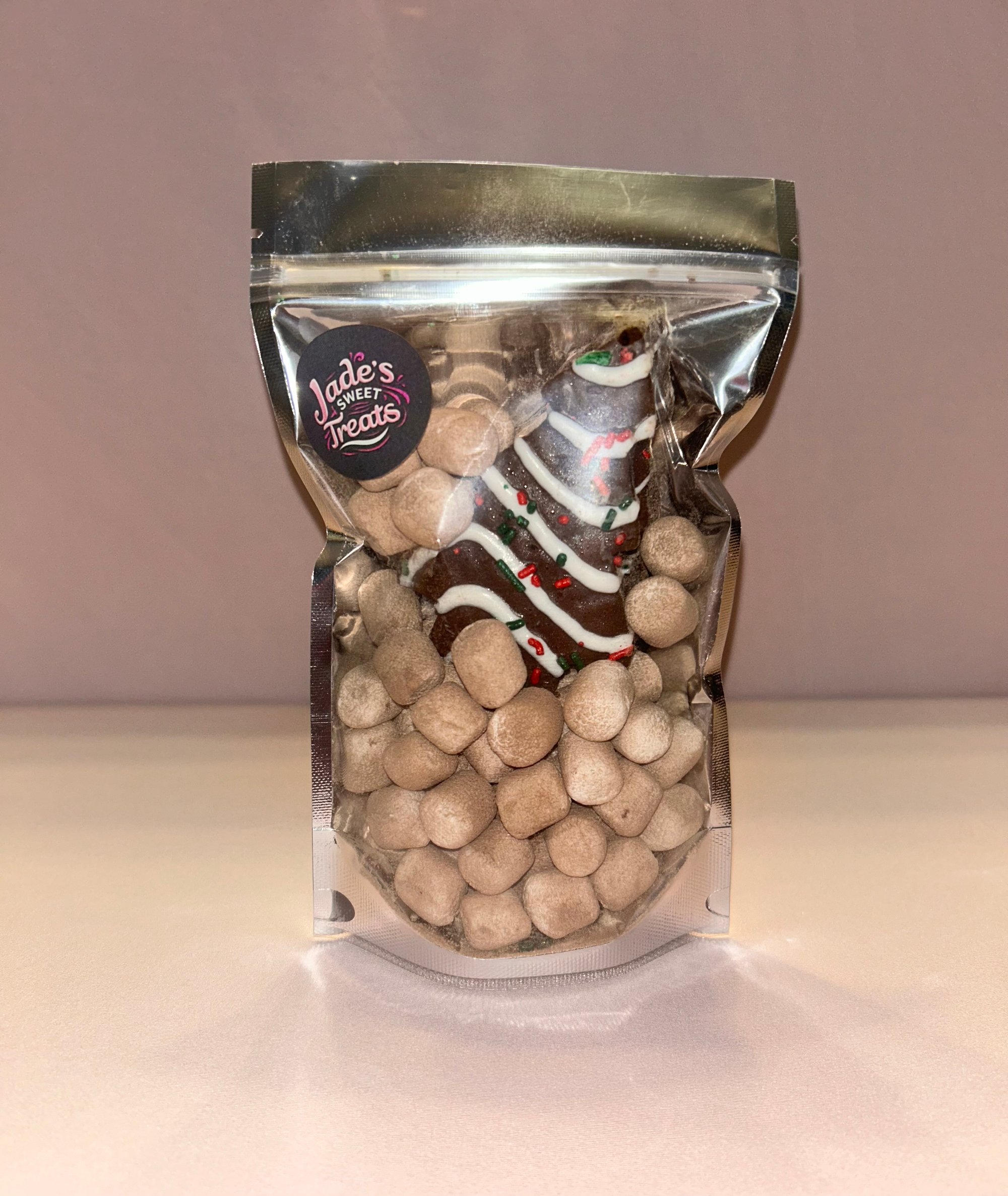 5x8 bag of freeze dried Little Debbie Christmas tree cake and marshmallows.