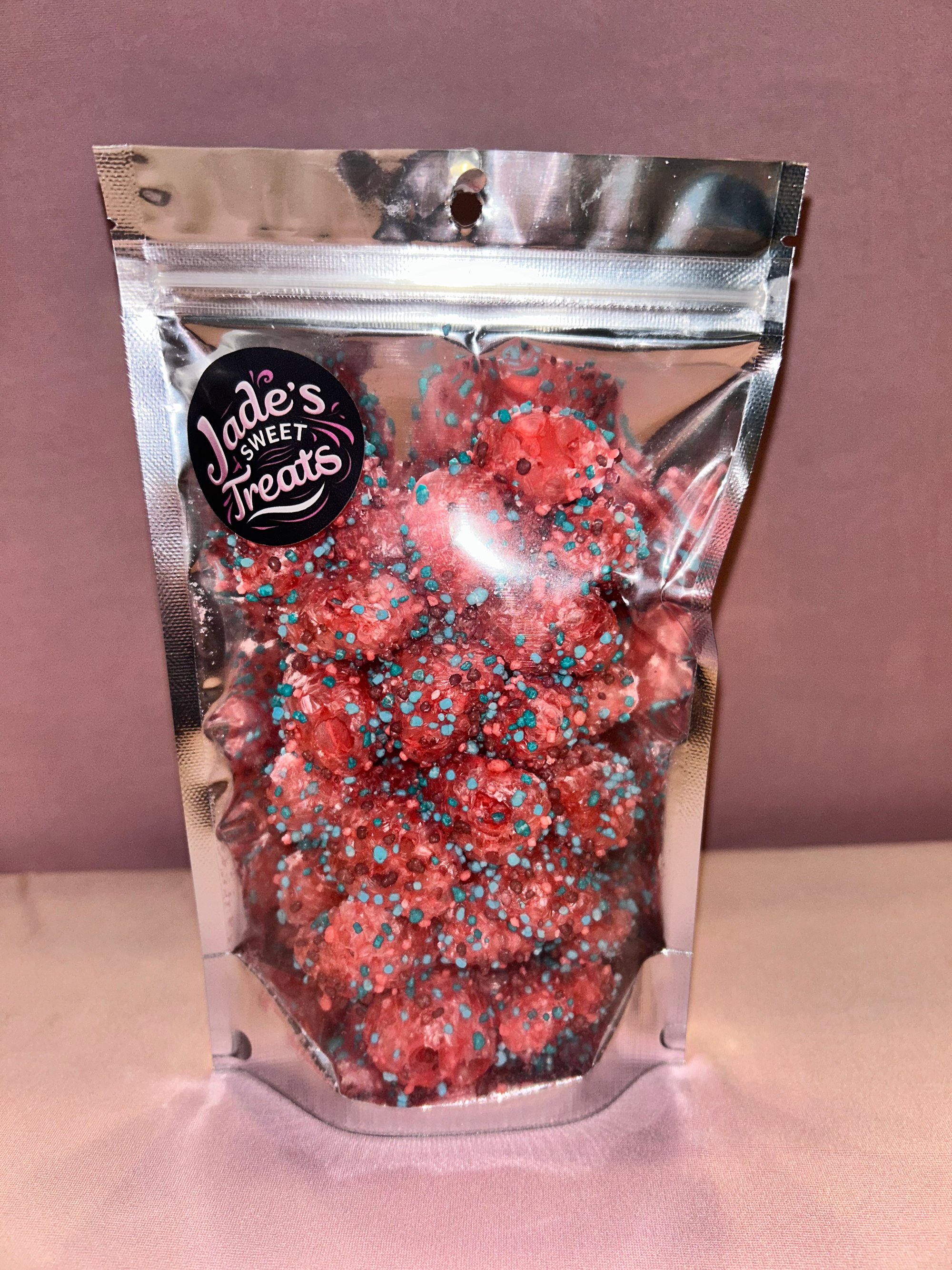 CORN SYRUP, SUGAR, DEXTROSE, GELATIN, MODIFIED FOOD STARCH, WATER, CONTAINS 2% OR LESS OF MALIC ACID (DL-MALIC ACID). CITRIC ACID, SODIUM CITRATE, APPLE JUICE CONCENTRATE, GUM ARABIC, NATURAL AND ARTIFICIAL FLAVORS, CARNAUBA WAX, COLOR ADDED, BLUE 1, RED 40, RED 40 LAKE, BLUE 2 LAKE, CARMINE (COLOR), BLUE 1. LAKE, YELLOW 5 LAKE.