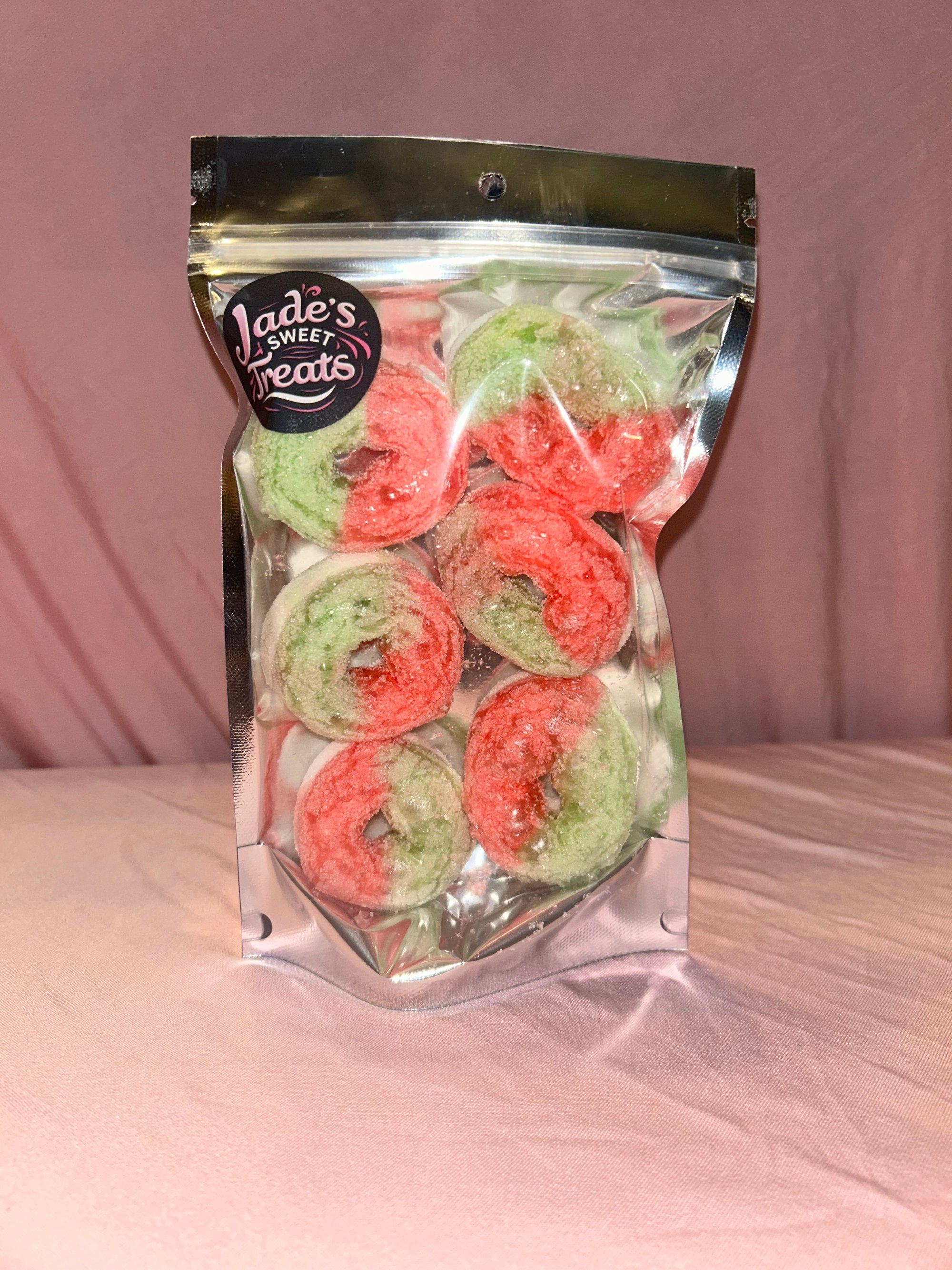 SUGAR, CORN SYRUP, WATER, SORBITOL, GELATIN FROM BEEF MODIFIED STARCH, CITRIC ACID, COLORS (TITANIUM DIOXIDE, FO&C RED 40), ARTIFICIAL FLAVOR.